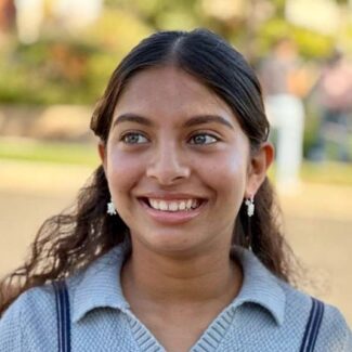 When my Telugu mom and Punjabi dad first met while performing at a Bhangra competition 25 years ago, their love for dance was passed on to me. Dance has always been a big part of our family and dancing at parties was something I loved to do as a little girl. I began Bharata Natyam in 2017, training with Viji Auntie from the very beginning on this beautiful, classical dance. These past 8+ years have created a deep love for this art form that relies on precision, discipline, and commitment. As a sophomore at Harvard-Westlake School, reflecting on this art of dance fills me with joy, nostalgia, and pride. It’s been such an incredible journey becoming part of this amazing community, but it doesn’t stop here. Presenting my Arangetram allows me to show everyone my passion and appreciation for Bharata Natyam.